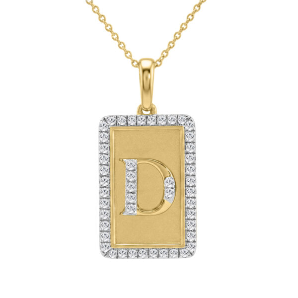 10K Yellow Gold letter ‘D’ Fashion Pendant With Chain – 0.20 CT Round Diamond Ladies Jewelry Gift