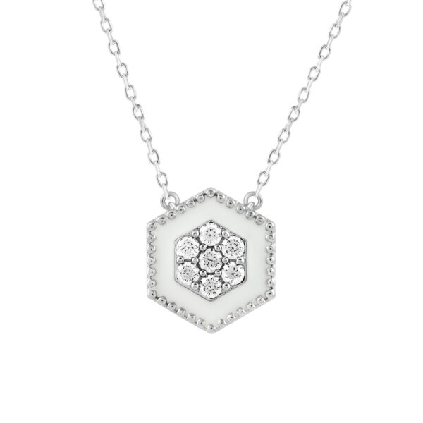 10K WHITE GOLD DOUBLE HEART FASHION PENDANT WITH CHAIN FOR LADIES 0.15CT ROUND DIAMOND