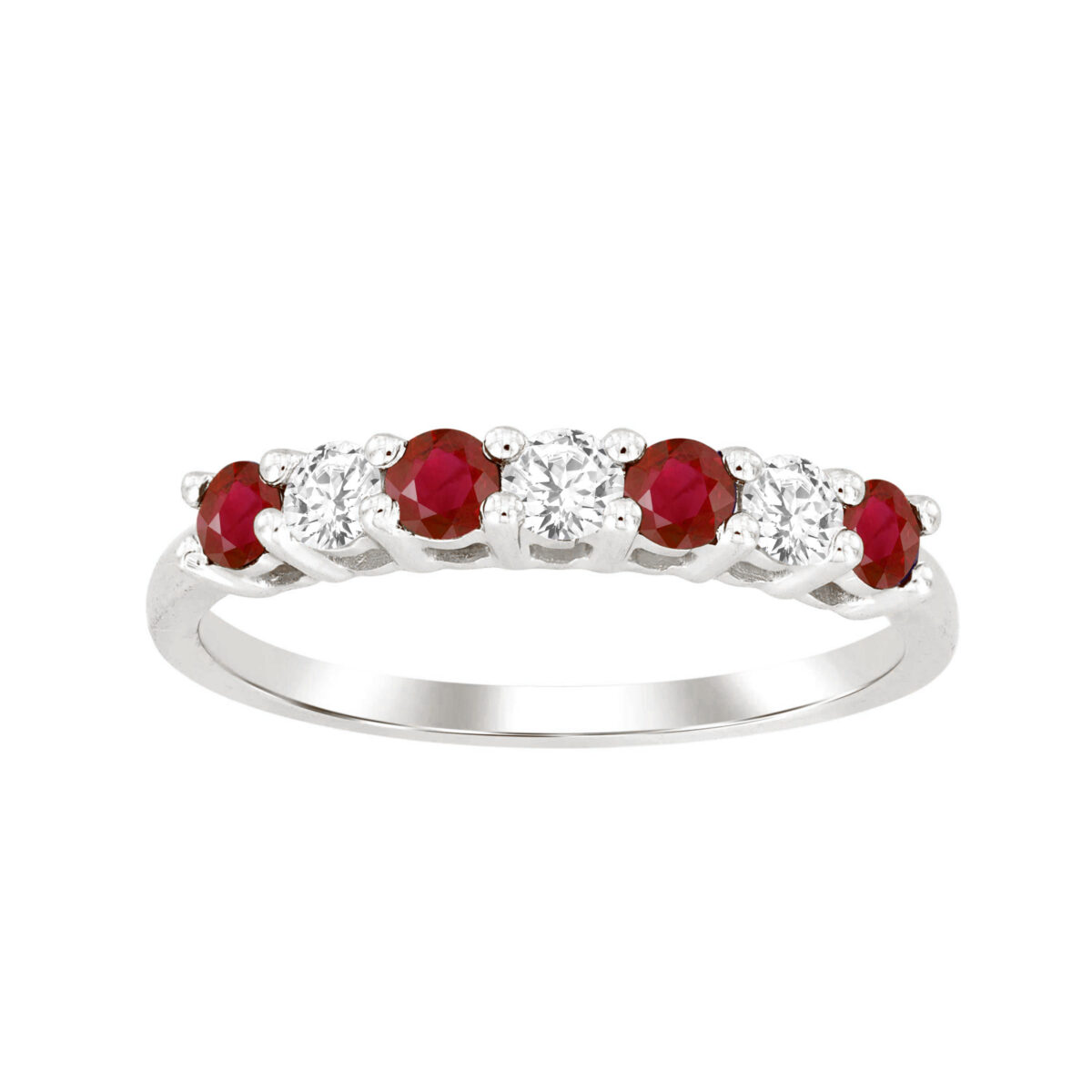 Home Rings LADIES BAND 0.65CT RUBY/ROUND DIAMOND 14K WHITE GOLD