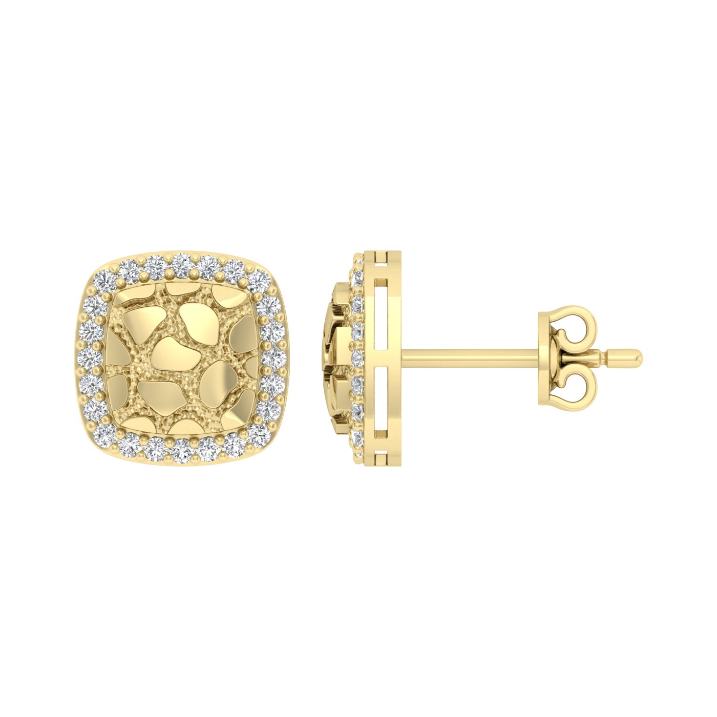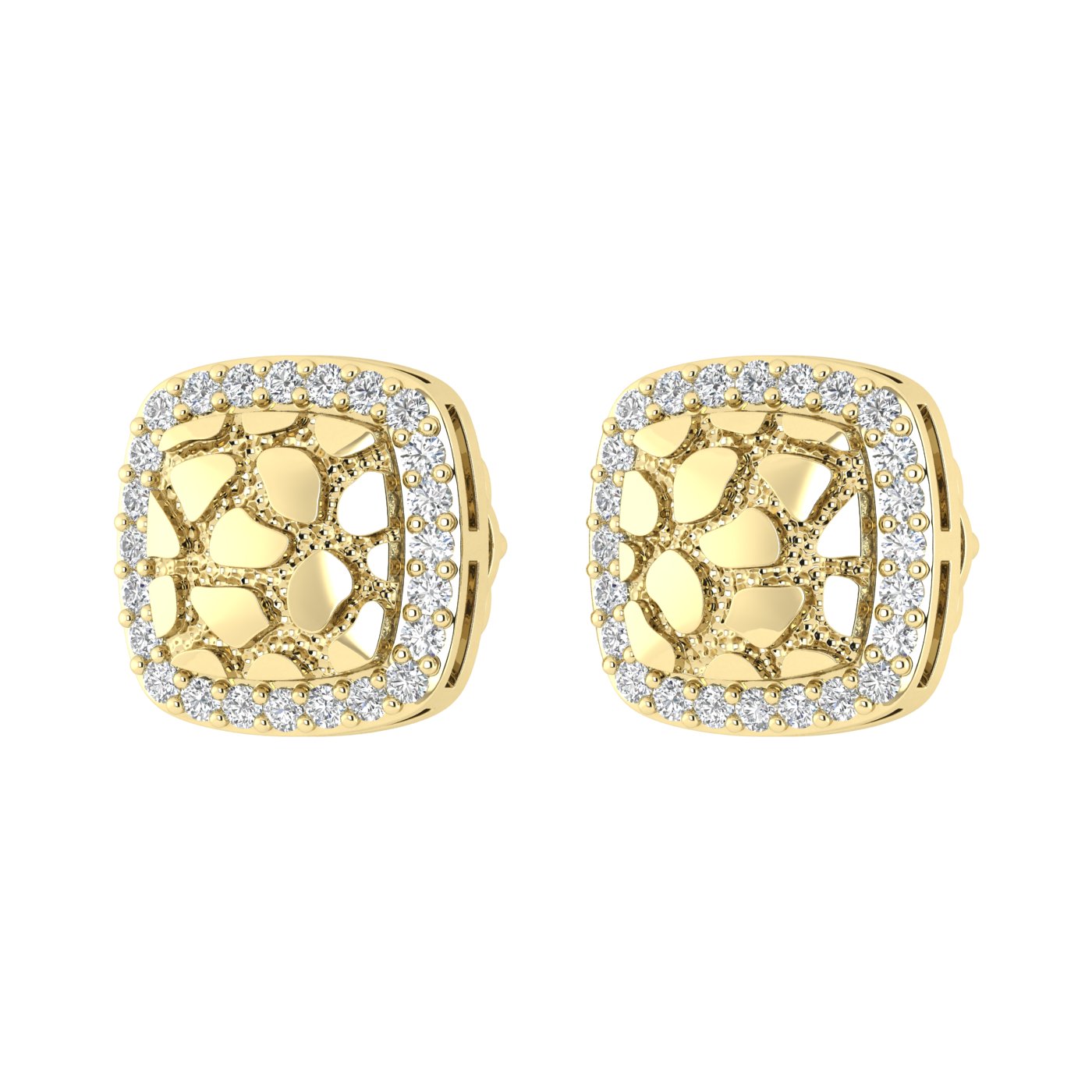 “Ladies Nugget Halo Fashion Earrings 0.25Ct Round Diamond 10K Yellow Gold – Fashionable Women’S Jewelry Gift