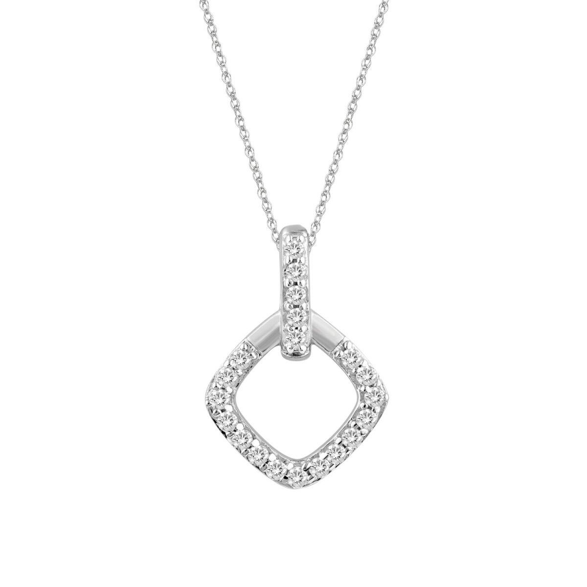 LADIES PENDANT WITH CHAIN 0.13CT ROUND DIAMOND 10K WHITE GOLD