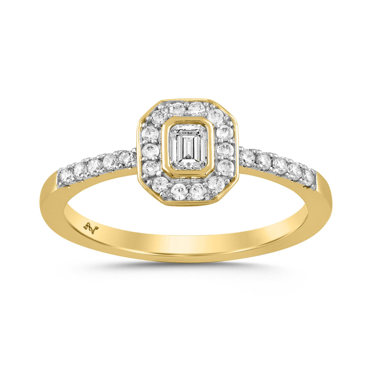LADIES RING 0.33CT ROUND/EMERALD DIAMOND 14K YELLOW GOLD